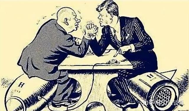 在古巴导弹危机事件中,美苏双方进行核较量。肯尼迪面对暴躁的玉米大帝赫鲁晓夫,采取强硬态度,派遣军队包围古巴,最终美苏双方相互妥协,才化解了“核战争的爆发”。