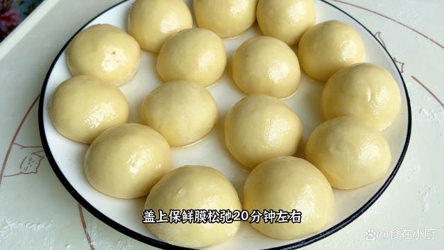 准备一个干净的盘子,刷上食用油防粘,把做好的生坯放入盘里,然后在表面刷上一层食用油,防止粘连, 盖上保鲜膜,松弛20分钟。