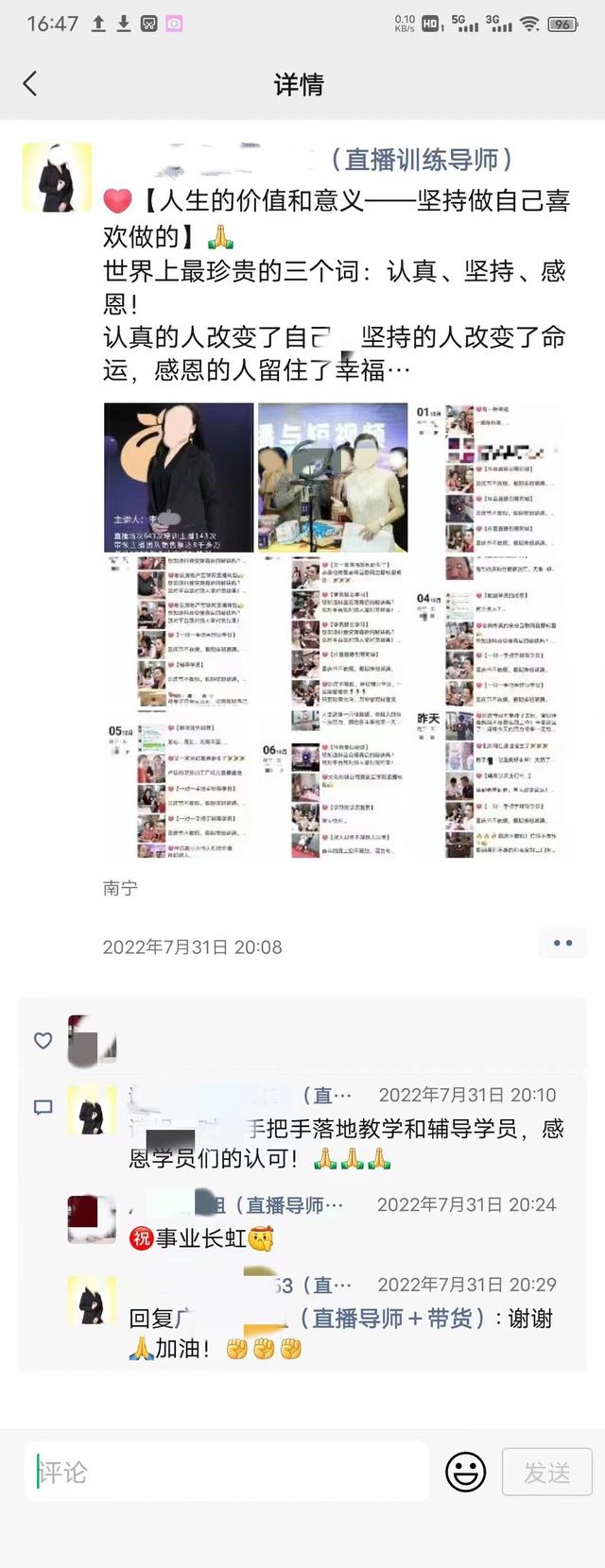 据了解,李某某是该公司一名普通的陪播职员,离职后自行创办公司,且主营业务与前东家基本一致,并夸大其词宣传自己的履历,自封资深直播培训导师,虚构宣传自己“直播场次600多次,培训主播100多次,带领主播团队销售额8千多万,帮助1000名企业家成功转型”,欺骗客户,实则是她是前东家最底层的一名普通职员,为达目的利用前东家的相关业务宣传品和学员图片资料在朋友圈和自媒体大肆宣传来拓展自己的业务,背后诋毁前东家名誉,利用在职期间获得的客户资源和商业机密,怂恿前东家的合作客户以高额回报利诱到自己的新公司进行合作,给前东家造成重大经济损失。