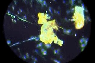真的、活的、爬动的螨虫!!!几乎透明的小白虫,触须、爪子都能看的清清楚楚。