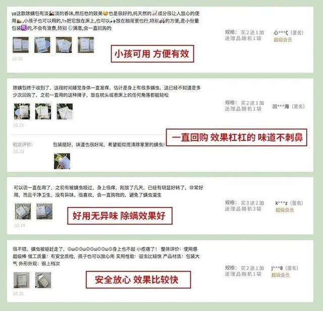 很多粉丝一年回购3、4次,也能看出对捕螨360的认可。