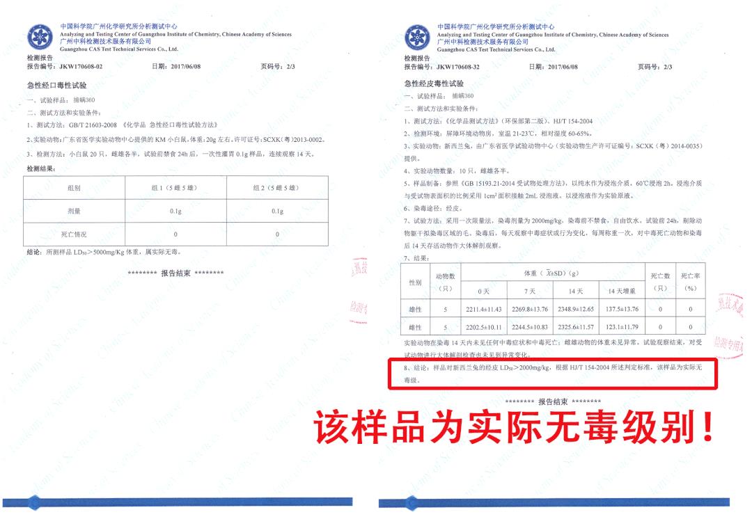 专门送去中科院广州化学研究所检测毒理,捕螨360也是无毒级别!