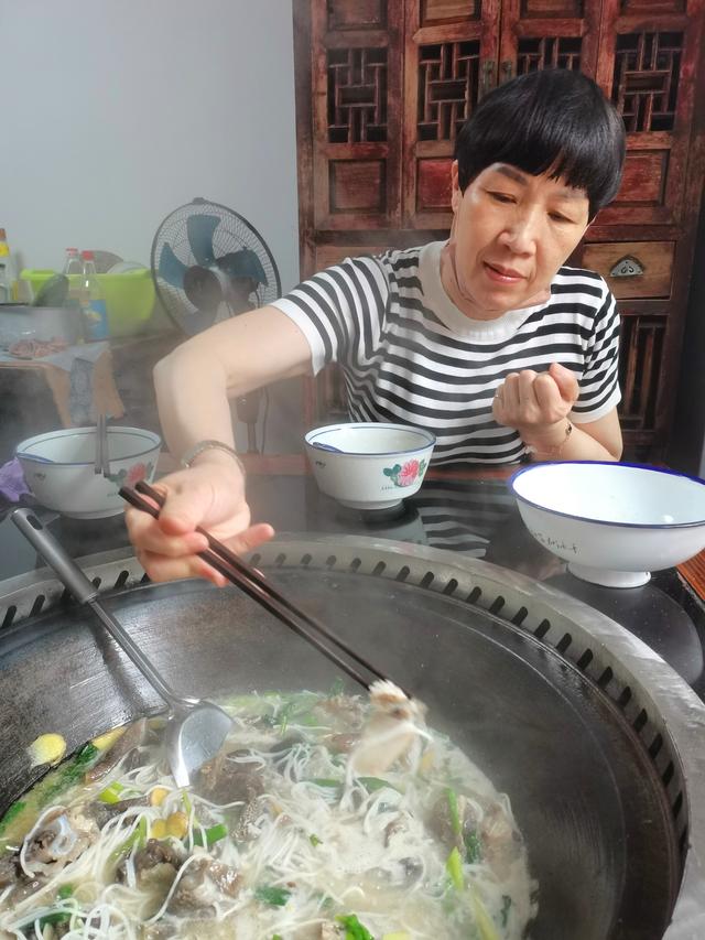 用柴火的温度,烧出一锅龙趸石斑鱼煮粉干,纯正的龙趸石斑鱼大抵就是如此,这柴火越旺,越滚越鲜香。