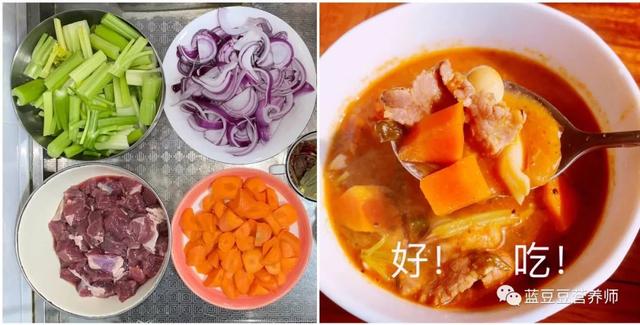 西芹、番茄、牛肉、少许胡萝卜、少许洋葱、少许土豆