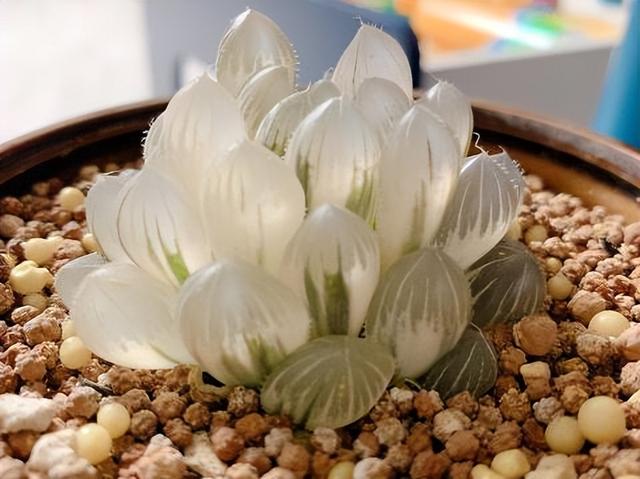 商家把玉露赋予这样的花语,虽然有那么一点儿牵强,但是也说得过去,毕竟大部分雨露也都是莲花座状的,本身就像一朵朵花一样,更重要的是养护得当的话,它们的叶窗晶莹剔透,给人一种圣洁的感觉,用来表达冰清玉洁的爱恋也是非常合适的。更重要的是,玉露这个品种对于光照要求不高,非常适合养护在阳台上。