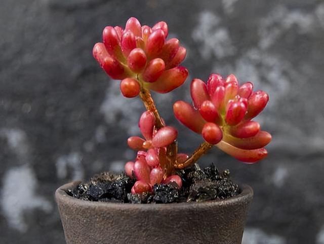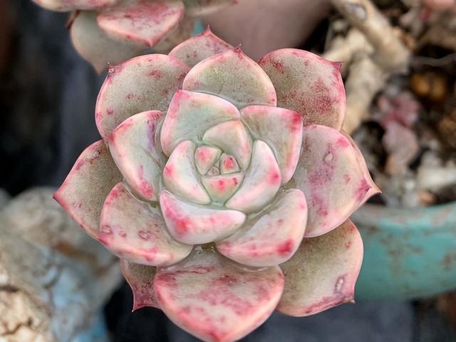 出状态的虹之玉,颜色又红又亮,是我非常喜欢的一款多肉,养护了好几次才勉强养活,今天看到商家给它的花语是人生知己、心意相通,还是比较诧异的,也许商家是取谐音的缘故吧,毕竟谐音梗一直都很流行。不过实话实说,虹之玉这个品种缺点比较多,爱徒长、爱长气根,夏季还爱出问题,对于新手来说,尽量不选这个品种,如果非要选的话,一旦发现有问题,就赶紧留下健康的叶片进行叶插,成活率非常高。