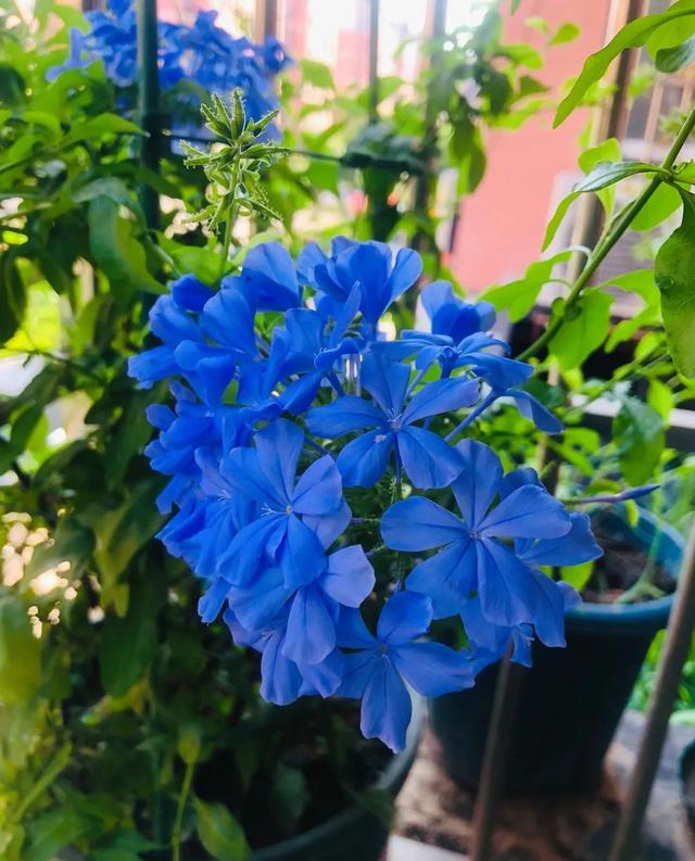 每天早上醒来的第一件事是刷牙洗漱,喝一杯温开水,然后就猫进阳台里为蓝雪花修剪施肥浇水,整个人被一阳台的蓝雪花簇拥着包围着,一天的好心情便从此刻出发。